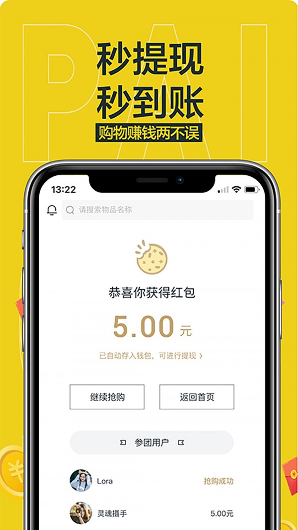 3、秉承“补贴用户”的运营概念,运行参团必拿红包的游戏规则,体验全新的购物能带来红包的乐趣。
