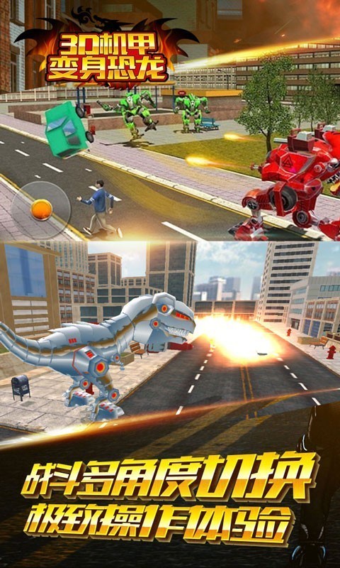 2、这是一个拥有庞大真实世界观的3D游戏,机器人可变化为3D真实恐龙,也可以变成人形,在模拟真实城市中自由行走。