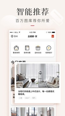 金螳螂家装修app是一款家装服务应用,金螳螂家装修app为用户提供一个专业的装修服务平台,让用户可以轻松订购合适的家装服务,享受舒适轻松的家居装修。12月周年感恩,千万回馈,装修立省30%。体验VR家装案例、装修效果图、装修攻略。金螳螂家,中国建筑装饰行业上市公司—金螳螂旗下品牌。