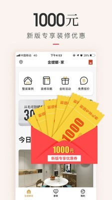 金螳螂家装修app是一个家装服务平台,在这里你可以选择订购自己喜欢适合的家装产品,并且非常的优惠,还有各种的活动等着大家噢,也会有专业的设计师来与你沟通,为您打造一个梦想之家!