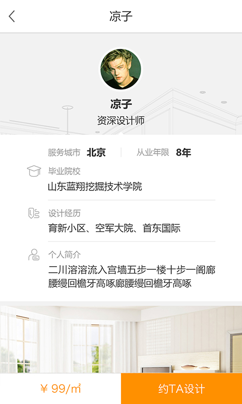 设计师业主端app是一款装修设计服务平台,设计师业主端app为有装修需求的业主提供高质量设计师,随时随地浏览设计师作品,选择自己心仪的设计师,打造自己喜欢的室内环境。设计师业主端,高质量设计师静待为你服务,优惠智能设计套餐琳琅满目,轻松下单,各类精美的设计图唾手可得。
