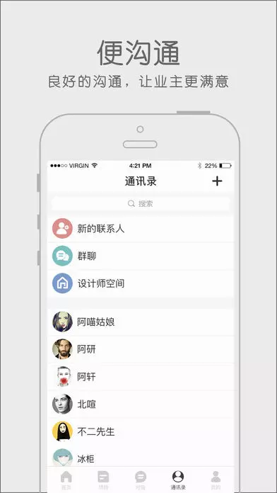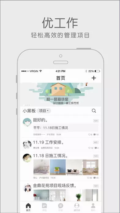 3)即时通讯,象微信一样,但比微信群更适合装修项目;