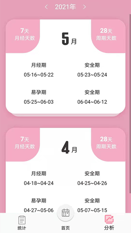 2、专业数据图表记录每月经期情况,全面掌握月经期;
