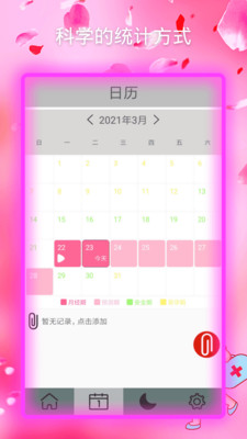 1、在APP里边能够轻轻松松的去纪录例假的状况,時刻去跟踪生理学的周期时间