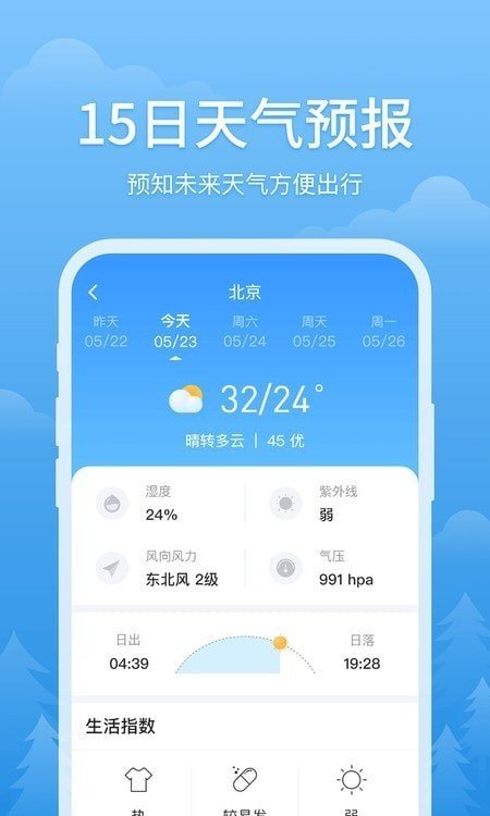 1、这里有精准天气预报15天查询,支持语音播报,为用户提供最精准的天气预报服务;