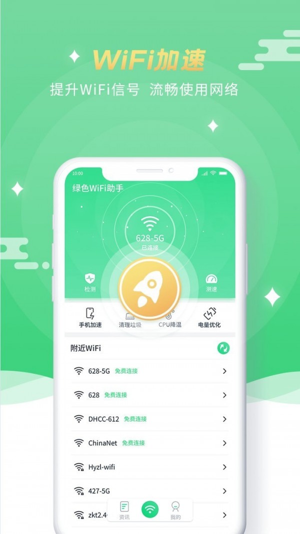 绿色WiFi助手是一款好用方便的网络管理软件,大家可以通过软件测试家中网络情况,解决网络问题,出门在外也无惧没有wifi,搜索附近优质安全网络一键连接,帮助大家释放手机内存,拥有更多空间,上网冲浪更加快速,随时随地在线链接无线网络,检索网址安全情况,还能解决网速问题,更好的优化系统软件,清理垃圾软件释放手机内存,加快运行速度,为用户带来更好的体验,快来麦氪派站下载体验吧。
