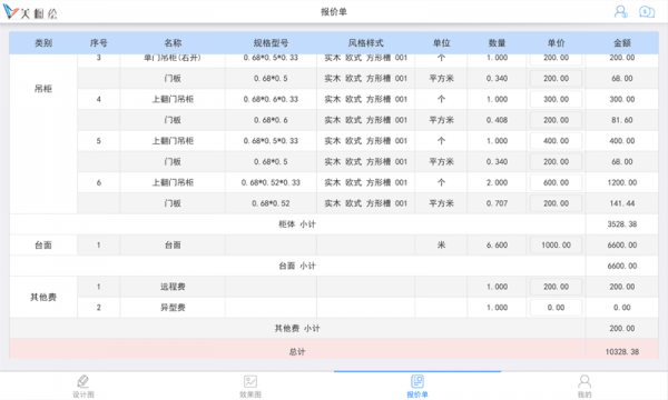 自动报价,避免少算漏算。自动统计出量,根据输入的单价自动计算报价,提供按延米、按单元等多种报价方式,支持远程费、异型费等费用项的自定义。