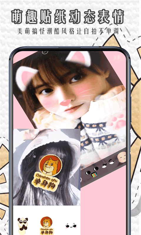 2.美颜自拍、几十种滤镜、视频录制、动态效果、贴纸美化、头像加V等各种功能。