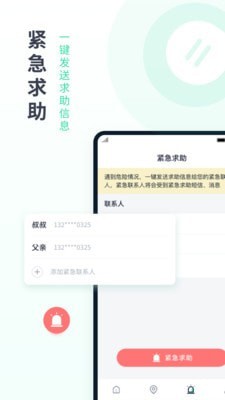4、一键求救:紧急时刻点击一键求救,系统自动向紧急联系人发送短信和拨打电话