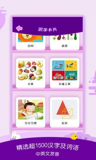 1、诸多识字卡片,用户可以根据自己的需求,自行选择学习;