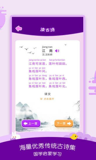 2、含有古诗为用户提供,在应用中就能学习经典的古诗文学;