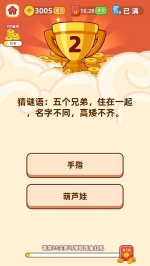 3、玩家通过猜出关卡题目给出的图片描述的成语来过关升级自己和随机获得红包。