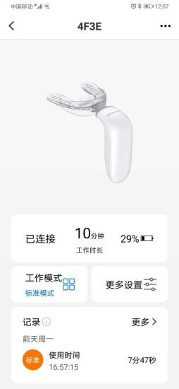 2、支持APP设置设备的工作模式、刷牙时长、刷牙起始区域;