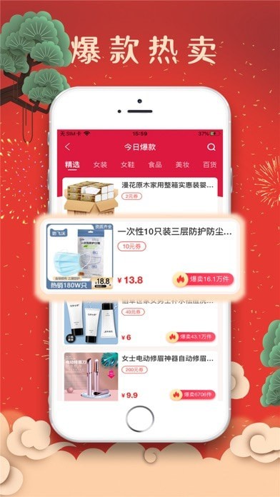 1.非常实惠的手机网购app,里有各种各样的商品;