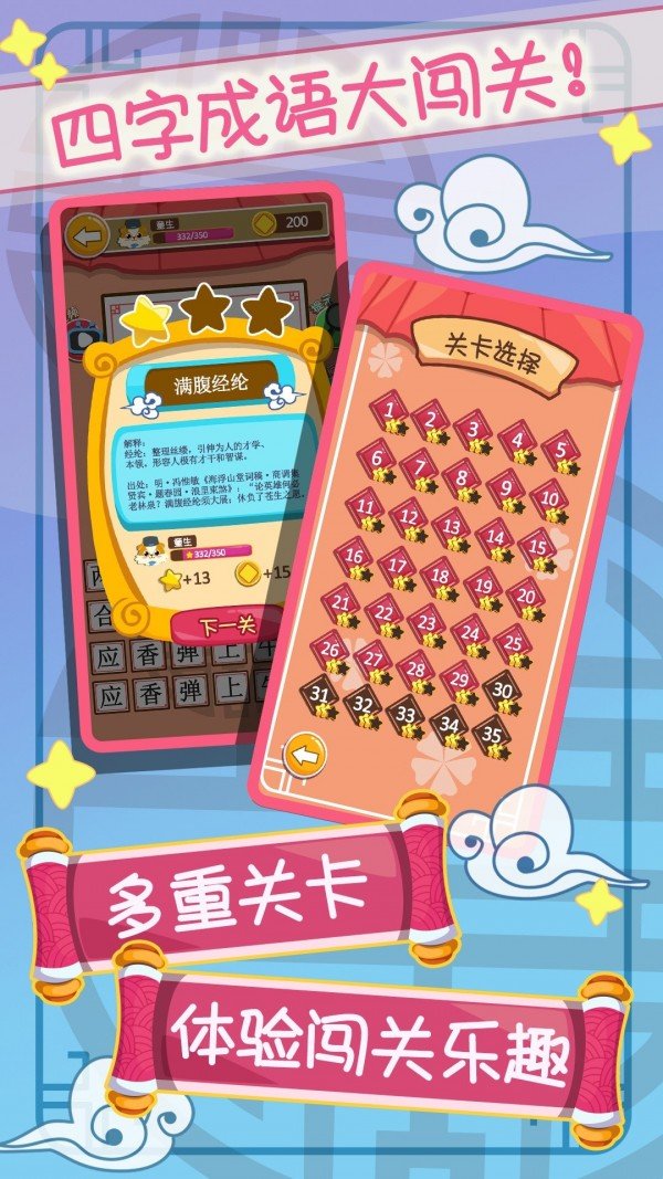 1、玩家可以感受把成语和消除等的合并在一起的游戏玩法。