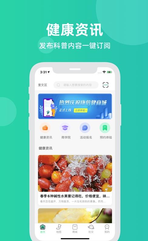 康倍健app作为一款面向客户的一站式服务平台,依托其强大的门店及商城服务功能,进行客户的不断拓展及裂变,以最优的服务、最好的体验给客户带来最贴心的感受,以成为一体化健康疗养领军品牌为企业最高愿景,充分发挥社交功能的价值及意义,为客户带来全透明的产品分享及体验,引领健康产业,守护健康生活,让客户享受到更好的健康服务。
