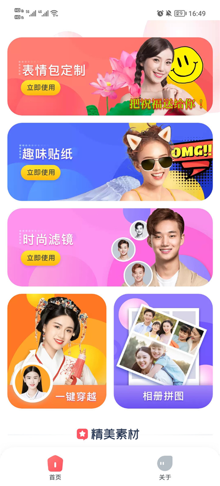 1、这里的各种拍照功能也很多,超多热门的滤镜以及贴纸都可以免费使用;