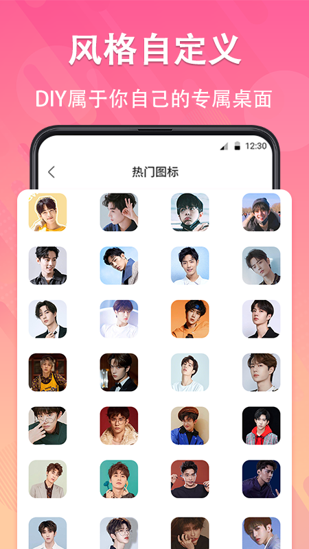 手机照片换图标APP是一款能够让用户自由更换手机本地应用图标的工具,您以后就可以使用个性的手机应用图标,让图标可以变得个性十足;平台提供的应用图标样式非常的丰富,用户可以自由的查看各个图标的样式,让许多用户都能发现自己喜欢的手机应用图标;这里的图标都是可以自由使用的,这样才能够满足广大用户更换手机应用图标的需求,快来下载体验吧。