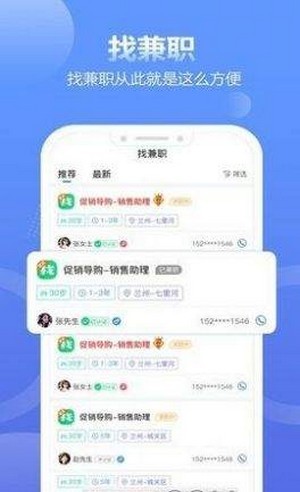 2、所有的兼职工作信息都显示在平台上,这样用户就不会累到出去找工作。