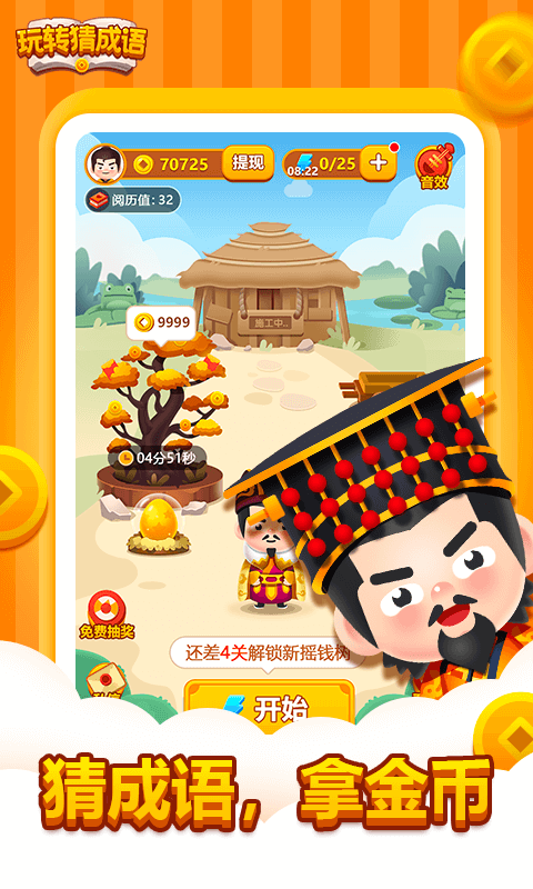 玩转猜成语游戏是一款成语答题的休闲闯关游戏,加入到成语的世界去闯关,游戏中拥有各种创意的答题模式玩法等你来尝试,充满着趣味性的文字游戏,答题还会有奖励等你来获取,人人都能成为优秀的成语大神,只要你不断积累,才能够创造出更多的奇迹,在游戏中去积累更多的知识。玩转猜成语赚钱是真的哦,作为一款成语赚钱小游戏。游戏的成语填空玩法简单,玩家过关既可以领取现金红包,边玩边学知识还能赚钱!