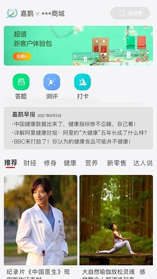 嘉鹊商城软件是款类型的划分十分细致的商城购物软件,软件带来了海量健康的商品,让广大用户可以更好的使用。更为丰富的商品类型,满足广大消费者对于健康的需求,并且软件为用户提供了专业的养生知识科普、实惠的保健商品和实用的健康工具,让用户对自己的身体更加了解,对养生知识更加了解,让生活更加健康。里面还有超级多的功能等你来进行体验,千万不要错过了哟!