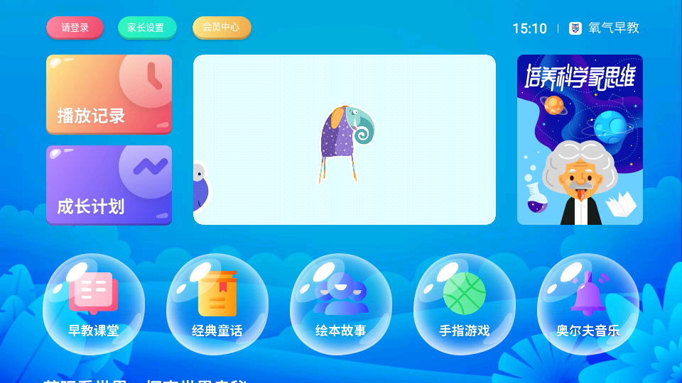 3、氧气早教是一款专为0-6岁婴幼儿研发的在家庭环境中进行陪伴式教育的产品,模式创新;