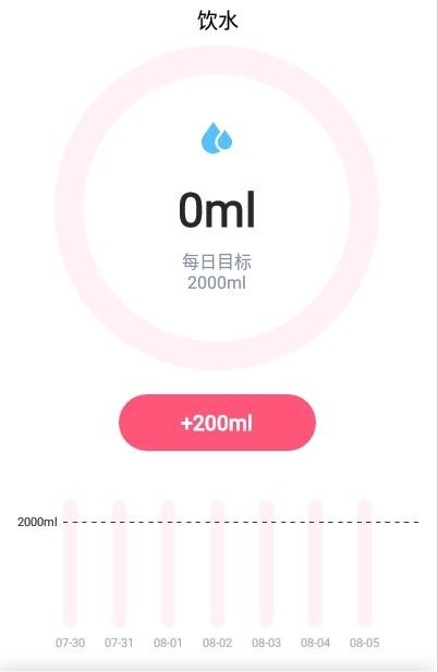 2、还会提醒你喝水,保证你每天的饮水量,每日喝2000ml的水。