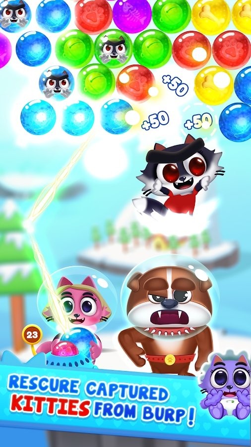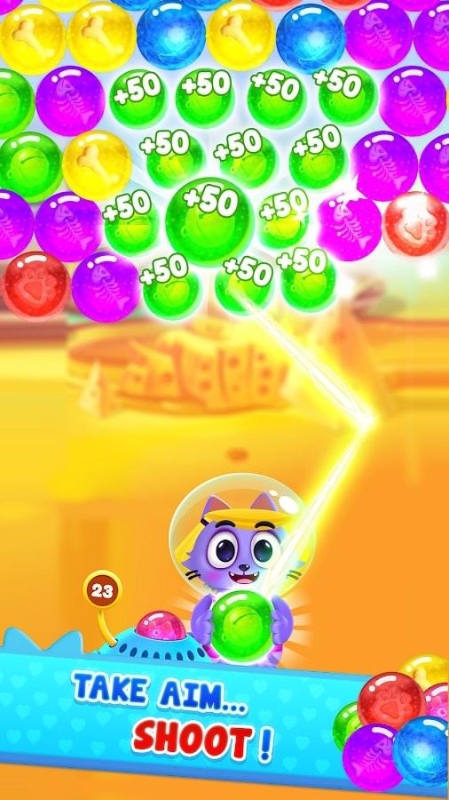 1.移动你的手指瞄准目标射击漂亮的泡泡来使所有的泡泡都被消除掉。