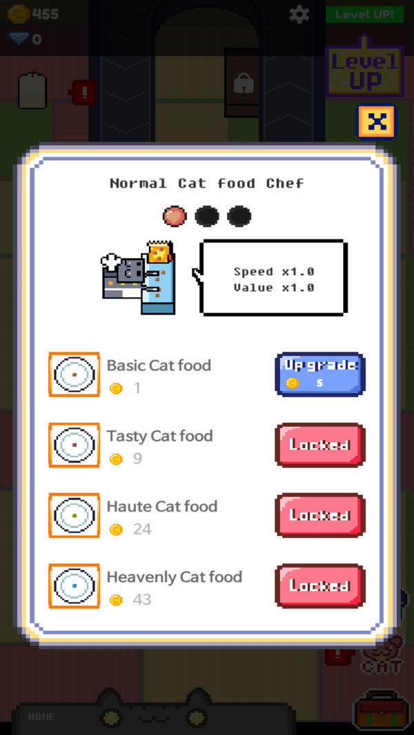 猫猫自助餐吧游戏是一款玩法十分有意思的模拟经营手游,玩家在游戏中将会经营一家服务餐厅,你需要运用招聘猫猫将餐厅经营好,玩法十分简单有趣,同时游戏中还含有多种类型关卡模式等你挑战哦,聘请更多的猫咪帮助你完成任务挑战吧。猫咪自助餐吧游戏的风格是简单的像素风格,每个顾客都可以点一份属于自己特别的食材,完成在线任务就能获得奖励了,收获到更多的鱼干。