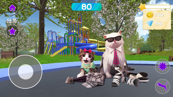 3、左手控制小猫咪移动,右手控制小猫咪跳跃或者拆家,甚至还能在主人发火的时候卖个萌!
