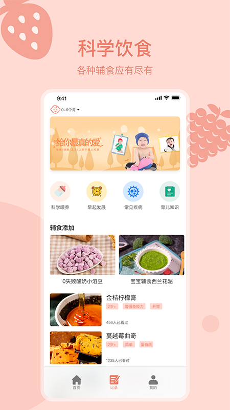 宝宝菜谱app是一款为刚出生的宝宝打造的手机菜谱,宝宝辅食App,为广大新手爸妈全面提供宝宝特殊成长时期所需要的营养,让宝宝的饮食营养均衡,宝宝健康成长。同时,这里的任意食谱可以直接打开,详细的图文教程可以直接查看,用户可以掌握每一个食谱的食材信息、制作步骤,跟着步骤的图解即可自学制作辅食,马上下载体验吧。