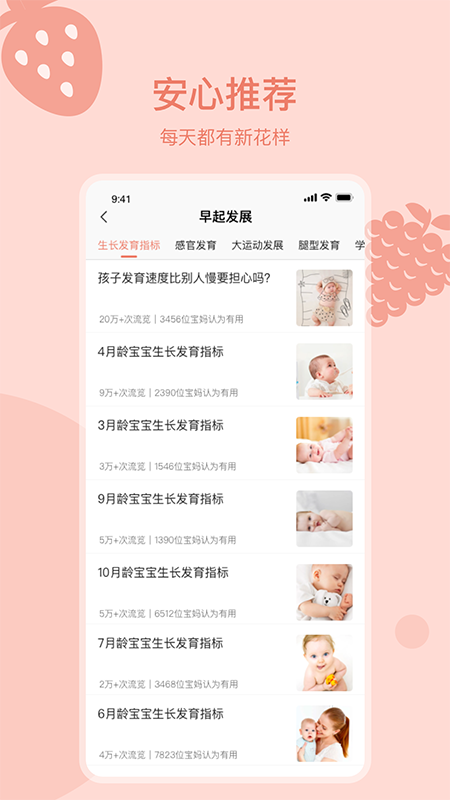 3.海量育儿知识介绍,帮忙新手妈妈轻松应对宝宝出现的各种问题;