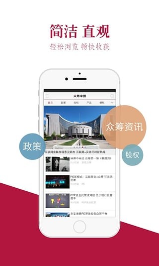 众筹中国资讯客户端,是由最具影响力的众筹资讯门户——众筹中国精心打造的全新移动端应用。产品风格简练、友好、实用,产品内容专业、及时、生动、实用。以此为平台,接下来,众筹中国将结合自己在众筹相关领域的深度专业性和广泛影响力,为自己的有品质的受众群,提供更具实际价值的服务。