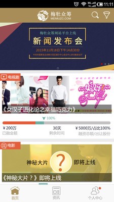 梅牡众筹app是北京梅牡众筹文化有限公司的官方移动应用,主要为影视剧和文化项目提供专业的投融资服务。帮助文化产业和互联网金融健康发展。北京梅牡众筹文化有限公司致力于推动文化与互联网金融的结合,促进文化产业和互联网金融的健康发展,通过优选高成长、高回报的影视等文化项目,进行全方位的风险评估和控制,采取投前调研投后监管的运营模式,为影视剧及其它文化项目提供专业的投融资服务,是以影视剧为主,其它文化产业为辅的专业垂直型优先收益权众筹服务平台。