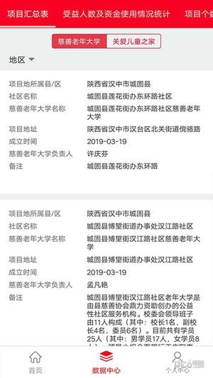 可以从数据中心了解到项目覆盖地区、受益人数等信息;