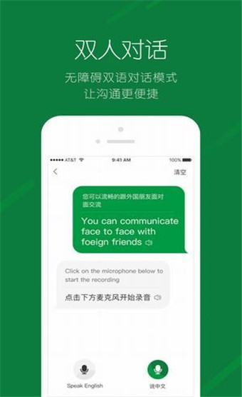 双人对话:双人中英对话,实时翻译对话内容,让沟通便捷无阻。