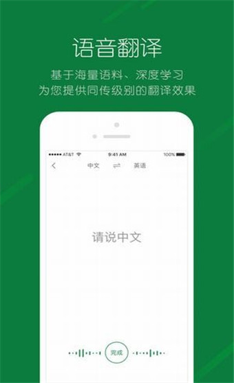 语音翻译:语音输入,实时翻译,人声播报,感受同声传译般的体验。
