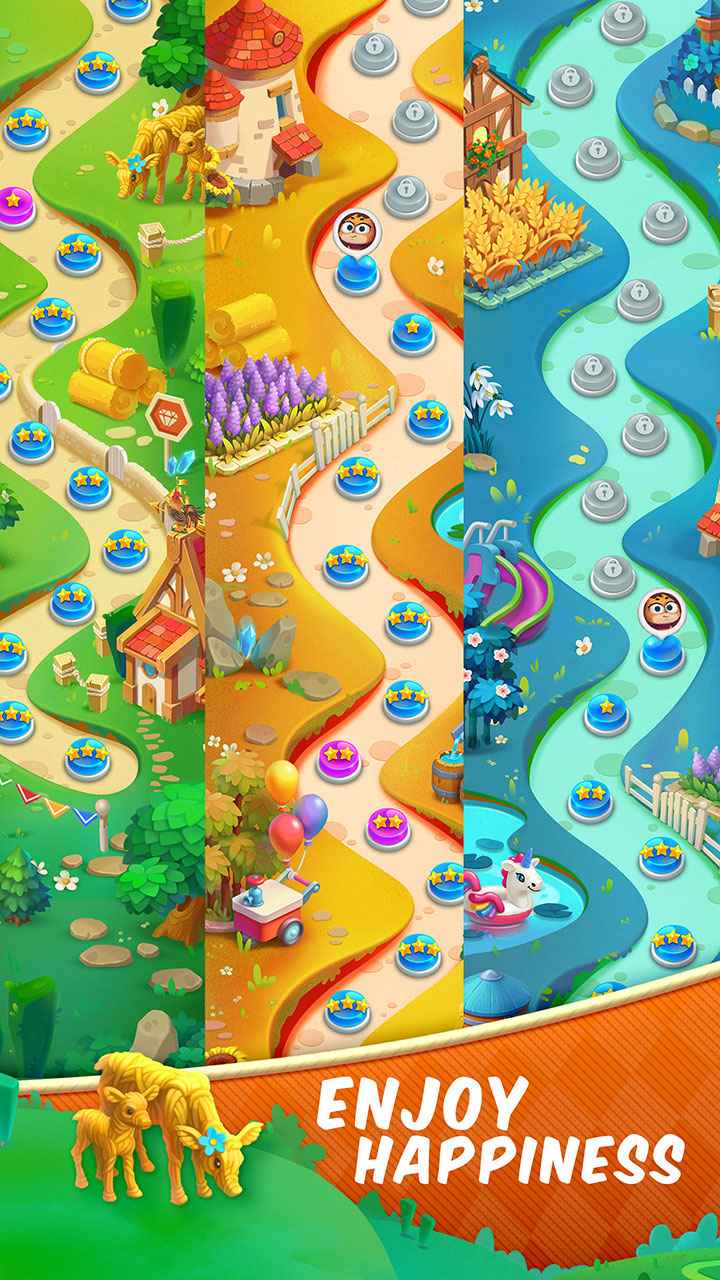 清新的藤蔓场景,明晰的面板设计,华丽爽快的特效效果,还有萌动有趣的小动物们,定会陪您度过欢乐休闲时光