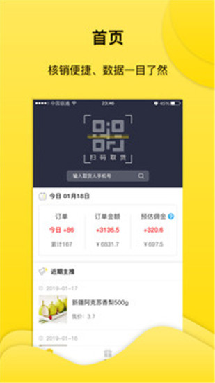 点击扫码取货,消费者可以扫描二维码核验订单。