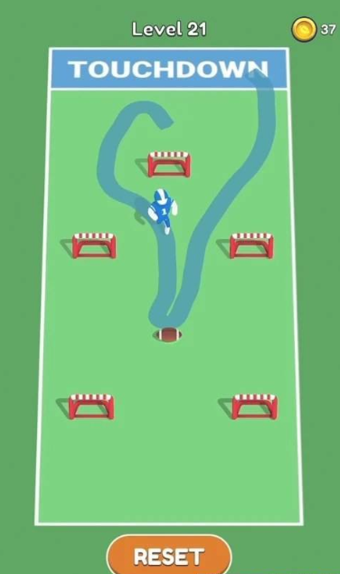画线达阵游戏是一款参加热血冲撞运动的闯关竞技游戏,场景以橄榄球场为主,玩家画线帮助球员规划移动路线,从自己的地盘带球冲到对方的球场,在带走跑的过程中会遇到对手拦截,球场地图并不大,当玩家没有把握用横冲直撞的方式突破防御,需要动脑组织战术,画线的时候有新的想法。游戏中虽然用到了橄榄球达阵得分的游戏玩法,但是对于操控性上的设定却是大大降低了玩家的上手门槛,更加简明扼要的游戏目标让你轻松体会其中的激情快感,同时又有极具挑战的游戏模式,自由规划进攻路线,让你在游戏中得以体会其中的酣畅淋漓,以你最敏锐的眼光,享受这番令人欲罢不能的激情体验吧!