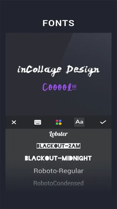 3.添加或者编辑文字功能,内置强大的文字编辑器,你可以更改字体样式包括文字大小,字体,间距,行距,阴影等设置 你还能使用涂鸦工具对自由拼图进行涂鸦涂抹