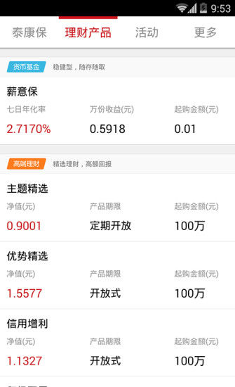 泰康保app是款手续简单交易免费的理财软件,软件为您提供最便捷的掌上理财工具,助力消费。泰康资产专注资产管理近10年,投资业绩卓越,受托资产规模超过7000亿,能够最大限度保障投资者利益。泰康保内对接泰康资产薪意保货币基金,门槛低至1分,可提升日常闲钱收益,赎回T+0快速转账,随时抢收长假收益。并可随时查看个人持仓状况,是高端人士追求财产增值的可靠选择。