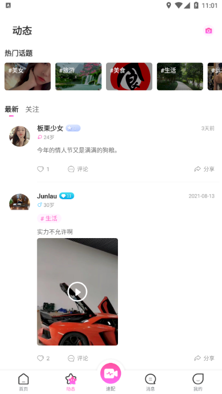 1、寻找喜欢的类型,和ta聊天交友,各种好玩社区和话题圈子;