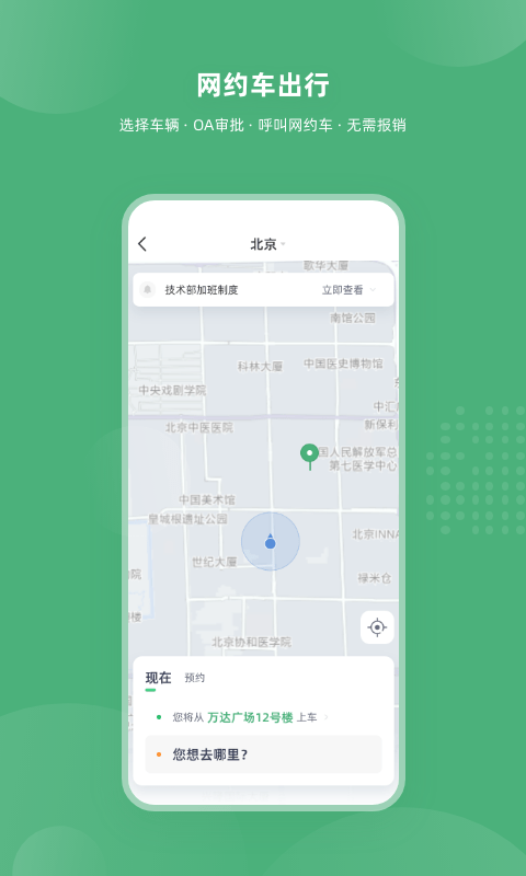 选择车辆,OA审批,呼叫网约车,无需报销;