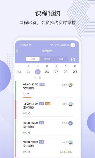 3.各个场馆的瑜伽课上课时间表都会实时公布出来,便于用户根据情况去预约。