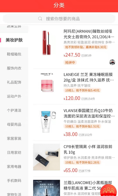 3、美妆护肤、箱包服饰、首饰饰品、家居百货、母婴亲子、个护清洁等。