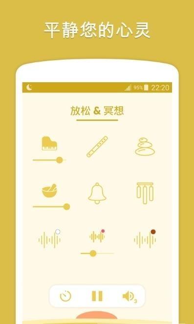 4、提供了四方面声音:雨和水、自然和深林、城市和家居、放松和冥想。