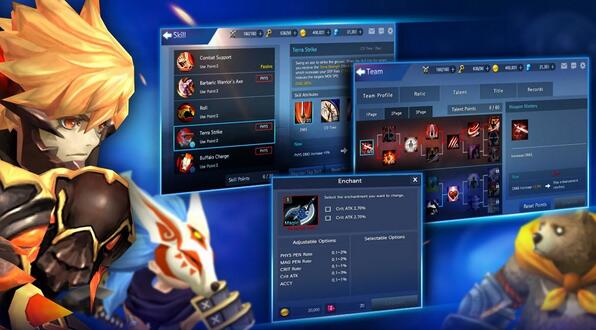 通过完成任务、赢得战斗甚至是在离线的时候也能得到奖励,随着等级的提升以及装备的搭配而变得强大。