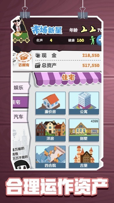 2、游戏的玩法相当丰富,投资,买股票,商业合作等等应有尽有。