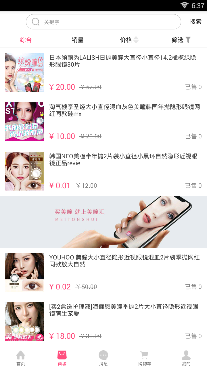 美瞳汇APP是一款专注于美瞳售卖的平台,该款app也是国内首家美瞳电商服务平台,用户可以在这里买齐适合自己的且性价比高的正品美瞳。该平台相较于其它综合性平台而言,更专业、针对性更强、营销费用更低。该平台致力于通过创新的模式为顾客和商家创造价值,平台前期可零元入驻,可大大节省商家的入驻成本,此外,app精准的流量获取方式,可以让商家通过小的投入,收获大的流量,提升运营效率。快来下载体验吧。